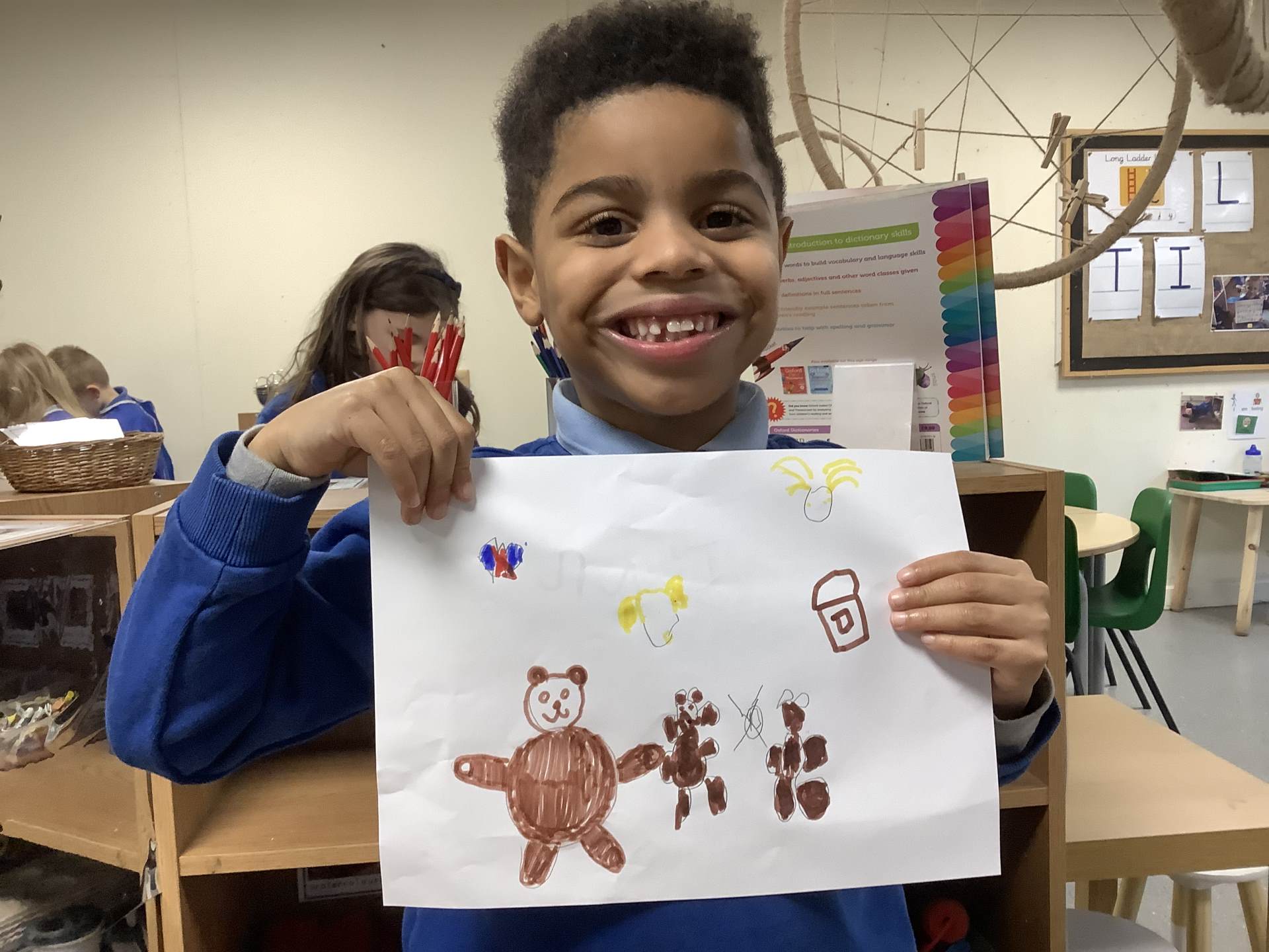 It has been lovely to see the children settle back so quickly after half term. This week we began our new topic ‘Toys through Time’. The children brought in their favourite toy from home. We discussed why it was their favourite toy, what the toy was made from and if it was electronic or not. Next week we will be taking part in our History off the Page workshop and exploring toys from the past. We also had our theatre trip to see The Smeds and The Smoos this week. The children had a fantastic time and enjoyed watching the performance with some popcorn!